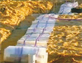 The two products are the 150mm wide perforated sheet with one dripper line and the 300mm unperforated sheet also with one dripper line. These two products can be used singularly or in combination.