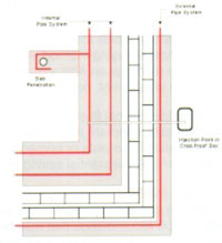 Pipes are spread 300mm apart on perforated plastic sheet over the entire area of the slab. The Injection systems Premium system incorporates an Injection systems External perimeter treatment to provide the best possible protection. No other system contains this huge safety margin.